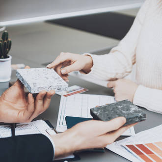 - Vad för material vill du ha bänkskivan i? Trä, laminat eller sten?